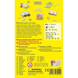 But du jeu : chaque joueur va prendre un malin plaisir à dissimuler son ou ses animaux derrière l'un des six décors de la ferme. Le joueur adverse aura ensuite deux essais pour trouver les cachettes. Ça ne marche pas ? Jamais deux sans trois, il tente maintenant sa chance au dé qui va désigner la couleur de l'un des décors. La chance sera-t-elle de son côté cette fois ? Bien plus qu'un simple jeu de hasard, Cache-cache apprend aux joueurs les fondamentaux des premiers jeux de société : les mécanismes de jeu, jouer chacun son tour, le lancer de dé, se faire surprendre, perdre, gagner... et surtout s'amuser ensemble !