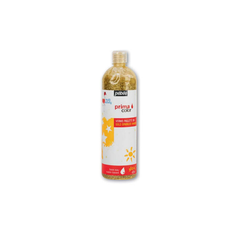Le vernis gouache pailleté or protège les oeuvres en les illuminant d’une pluie de paillettes dorées.