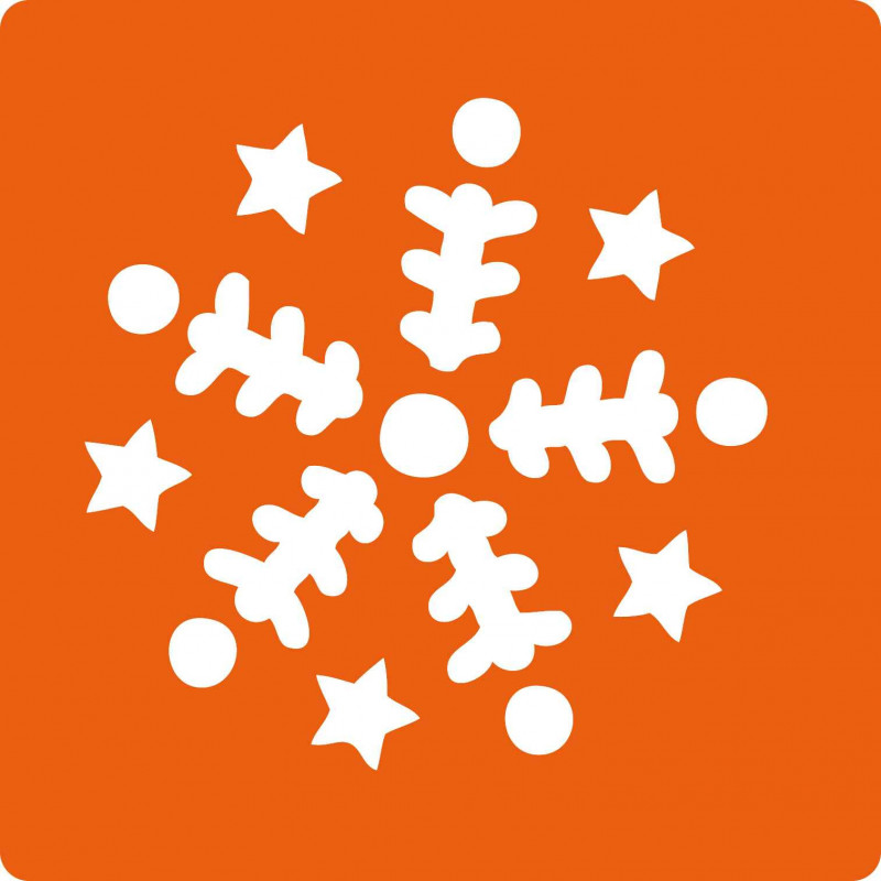 Pochoirs en plastique lavables à l’eau savonneuse. Dim. : 14,5 x 14,5 cm - Pochette de 6 pochoirs assortis
