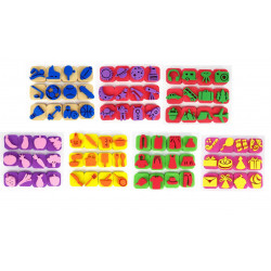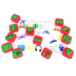 7 thèmes : sport, espace, fête, cuisine, vétements, aliments, voyage. Conditionnement idéal pour toute une classe.
