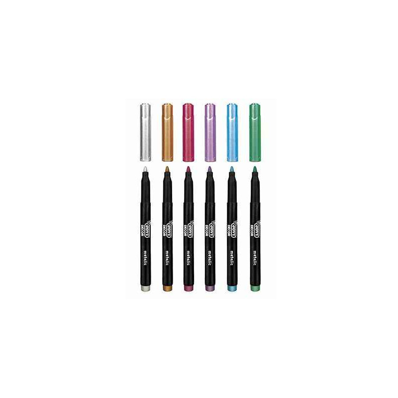 Couleurs effet métallique. Encre à base d'eau. S'enlève facilement des mains avec de l'eau et du savon. Idéal pour une utilisation pour des décorations sur papier foncé ou carton. Effaçable sur toutes les surfaces lisses. Pointe ogive : 4,2 mm.