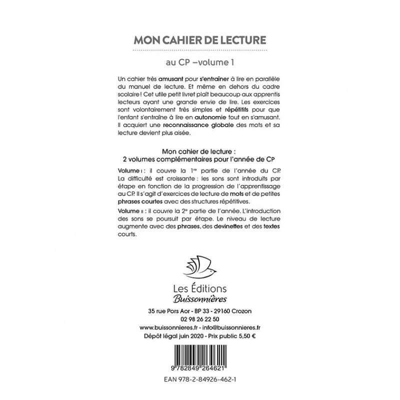 MON CAHIER DE LECTURE AU CP VOLUME 1 DÉBUT CP